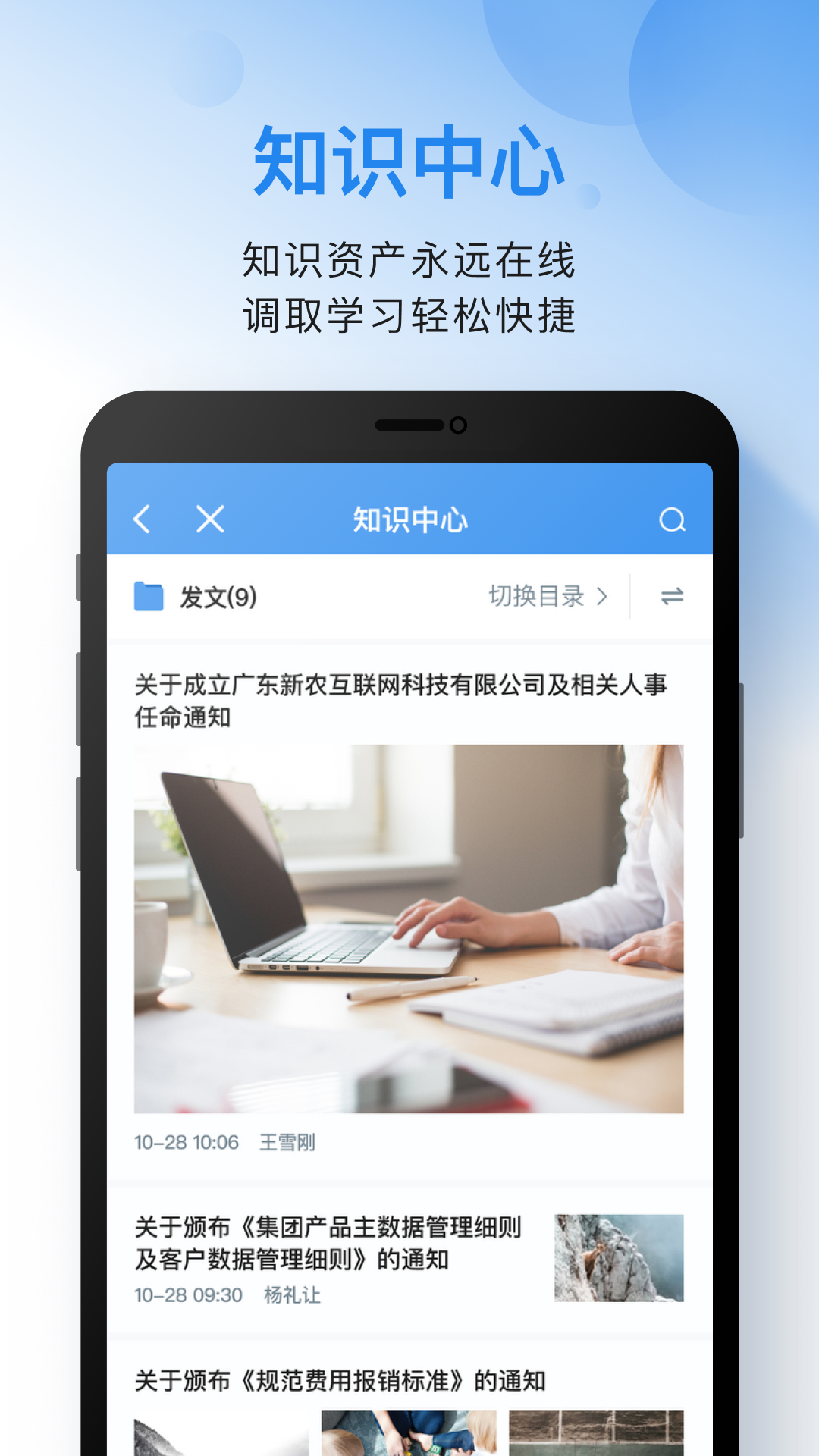8、支持基于组织架构的即时沟通、信息共享,通过轻应用随时连接企业员工和业务信息。一种新的工作方式。
