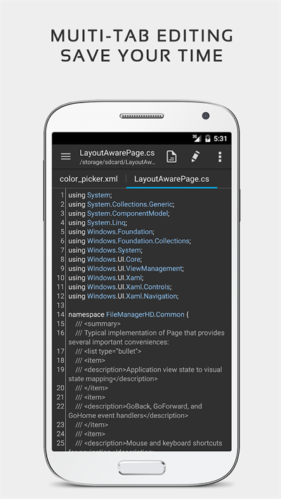 QuickEdit是一款功能强大而且使用十分方便的文本编辑的工具。该软件拥有全面的文本编辑功能,所以它既能能够成为记录重要事件的记事本、也能够成为成为编程语言的代码编辑器,支持c++、java、html、css、xml、php等多种代码编辑语言,而且该软件在填写出错的情况下还特意加强了撤销功能和重新制作功能,并且不会限制次数从而能够让大家在记录和编程的时候能够更加的方便。同时为了让软件能够运行更加流畅,开发制作组还特别加强了软件的性能,即使在文本记录了一万行的情况下也能够运行自如,不会出现卡顿。而小编本次给小伙伴们带来的是这一款QuickEdit最新版它将生活必备小助手,无论是工作还是生活记录都是能全部解决,并且在新版本中可以自行换行。对这款软件感兴趣的小伙伴,欢迎下载体验。