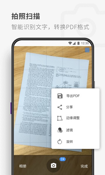 5、文件扫描:支持调整边缘及照片滤镜,支持将文件、照片扫描成PDF文件。