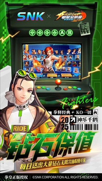 我们拥有SNK旗下拳皇、侍魂、月华剑士系列游戏多个角色授权。在人物技能跟原画设计上,我们的画师最大限度的还原原版街机角色的经典形象,并且在游戏技能设计中也还原了经典的动作。在游戏中,除了传统的卡池获取格斗家外,我们还在游戏关卡及剧情彩蛋中,开放多种渠道的格斗家获取途径,最大限度的满足各位格斗家的游戏收集乐趣。