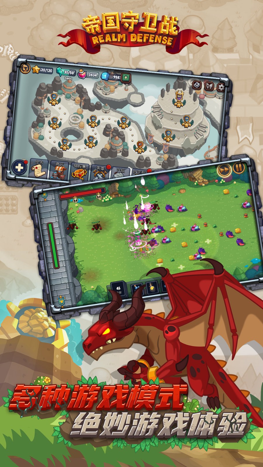 帝国守卫战是一款休闲塔防类手游,这款游戏融合了早期大部分同类型塔防作品的各种经典玩法,既有令玩家非常有熟悉感的地图场景和防御塔建筑,也有新意满满的英雄与消耗道具设定,绝对能够带给你不一样的塔防体验。在这个被称之为阿特拉的魔幻大陆上,其中生活着多达105个种族,但是绝大部分种族例如兽人、哥布林、胡狼甚至是人类巫师都归顺在了邪恶的恶魔麾下,控制着大陆上的绝大部分地区制造各种混乱让平民饱受折磨。而我们玩家在帝国守卫战测试服游戏世界中的任务就是要集结那些心怀正义的英雄,不论种族只要是想推翻恶魔统治的都可以招募到自己的队伍当中,在抵御敌人入侵村庄领地的同时向前推进,在不断的战斗中增强自身实力最终推翻恶魔的残暴统治。