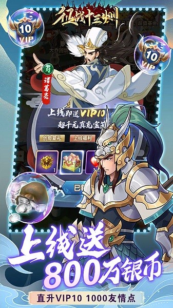 征战十三州是一款三国卡牌游戏,主要玩法是经营策略,以三国为背景,所有玩家需要在地图上发展自己实力,最后争霸天下,前期经营非常关键。这里主要需要升级的有武将、兵种和科技,全是战争类型,至于资源建筑,不用升,实力强大后直接去掠夺,这也是游戏中有趣的玩法。小编这里带来了征战十三州官服,玩家群体更多,更好玩哦。
