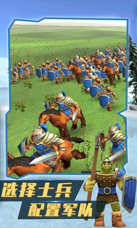 3、玩家不仅可以让两方挥着拳头互殴(话说,他们也没长手,那手长得跟树桩似的),还能给他们配备刀剑、护盾和弓箭,还有大炮,你还可以雇佣战斗鸡帮你赢得胜利。