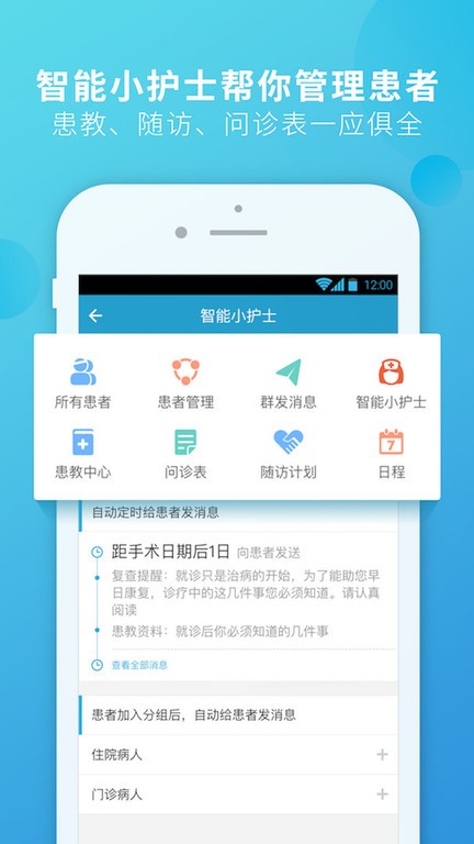 6、方便医生与患者交流互动了解情况、提醒随诊、安排床位;