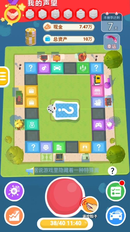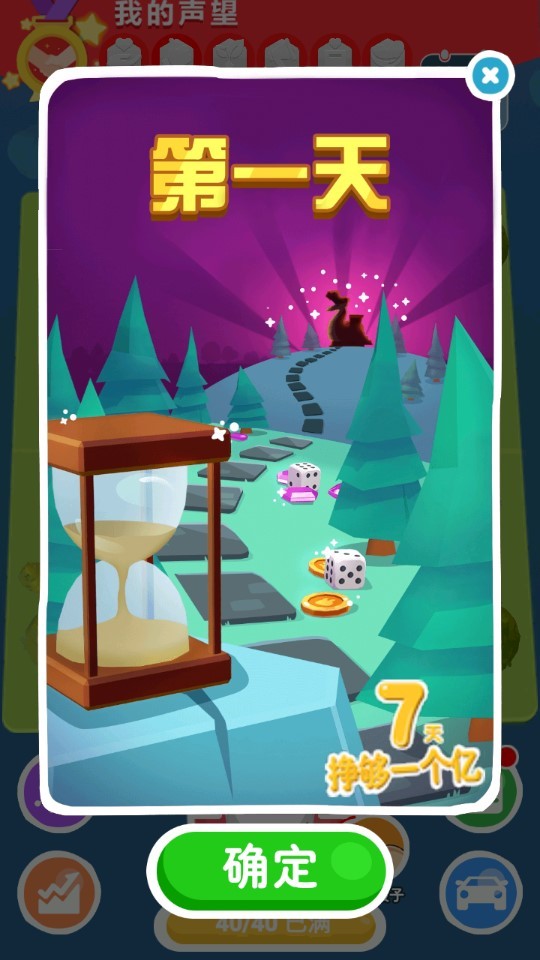 作为一款题材新颖,玩法颇为个性模拟经营游戏,明日首富这款游戏可谓别具匠心,不仅涵盖了传统的模拟经营规则,还加入了大家都比较熟悉的大富翁玩法,凭借转动骰子来伴随着时间的发展,棋盘式格局每个框框都有其固定的意义,其中游戏没有太多的难度,仅依需要通过点下方的骰子来触发事项,各种事件的触发,伴随着物价发生的变化都会影响着游戏的进行。