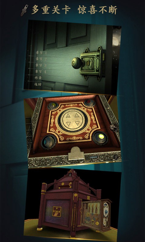 游戏的主角在一个封闭的房子里醒来,然后想尽各种办法出去,随着剧情的深入,也许,更大的阴谋就会浮出水面。The Room在开发时候力求谜题更加深入,玩家可能将面对的是很难的谜题哦。作为一款同类型的密室逃脱类作品,该作在难度上可以说是达到了较高的水准,且游戏全英文更是难上加难,游戏设有四大章节,内容丰富。