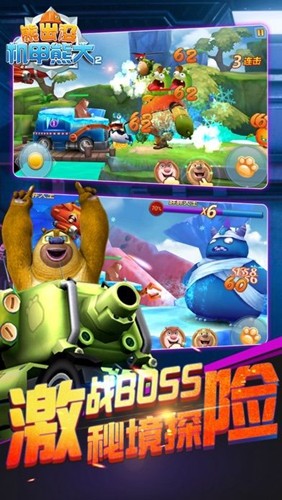 游戏拥有变形机甲的玩法,每个机甲的专属设计,做到了将科幻与原著的结合。全新变形熊大机甲,指尖激战全屏,游戏角色的连携和羁绊,不再是简单的数值堆砌!