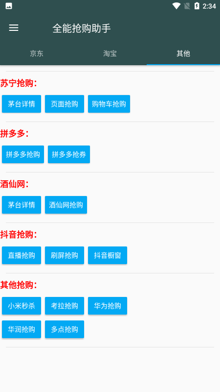 5、软件支持4个平台的飞天茅台抢购,支持11个平台的秒杀抢购,及其它一键签到、查库存等功能。