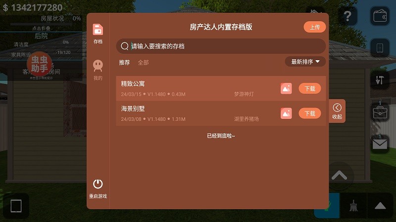 4、游戏中房子全卖会完成游戏,然后可以无限购买房子