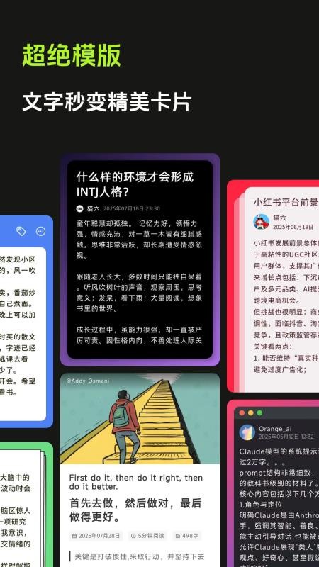 社交媒体适配:提供吸睛的图文模板,风格与小红书、朋友圈、微博等主流社交平台高度匹配,助力打造符合平台调性的内容;