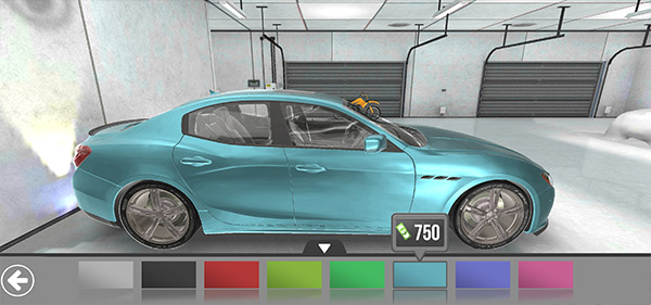 2、购买之后我们会进入到车库,滑动左下角的摇杆到一辆汽车的模型身旁;