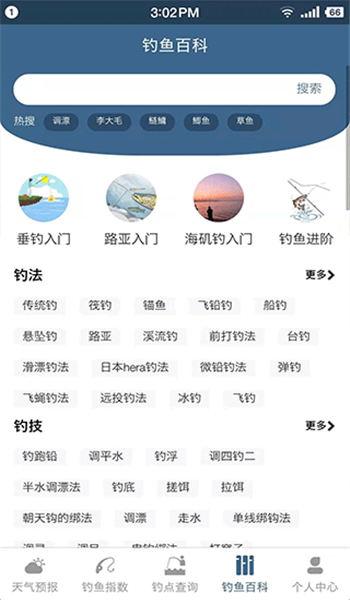 4、在软件里面还能查看钓鱼百科哦,里面有各种钓法入门和钓技可供学习。