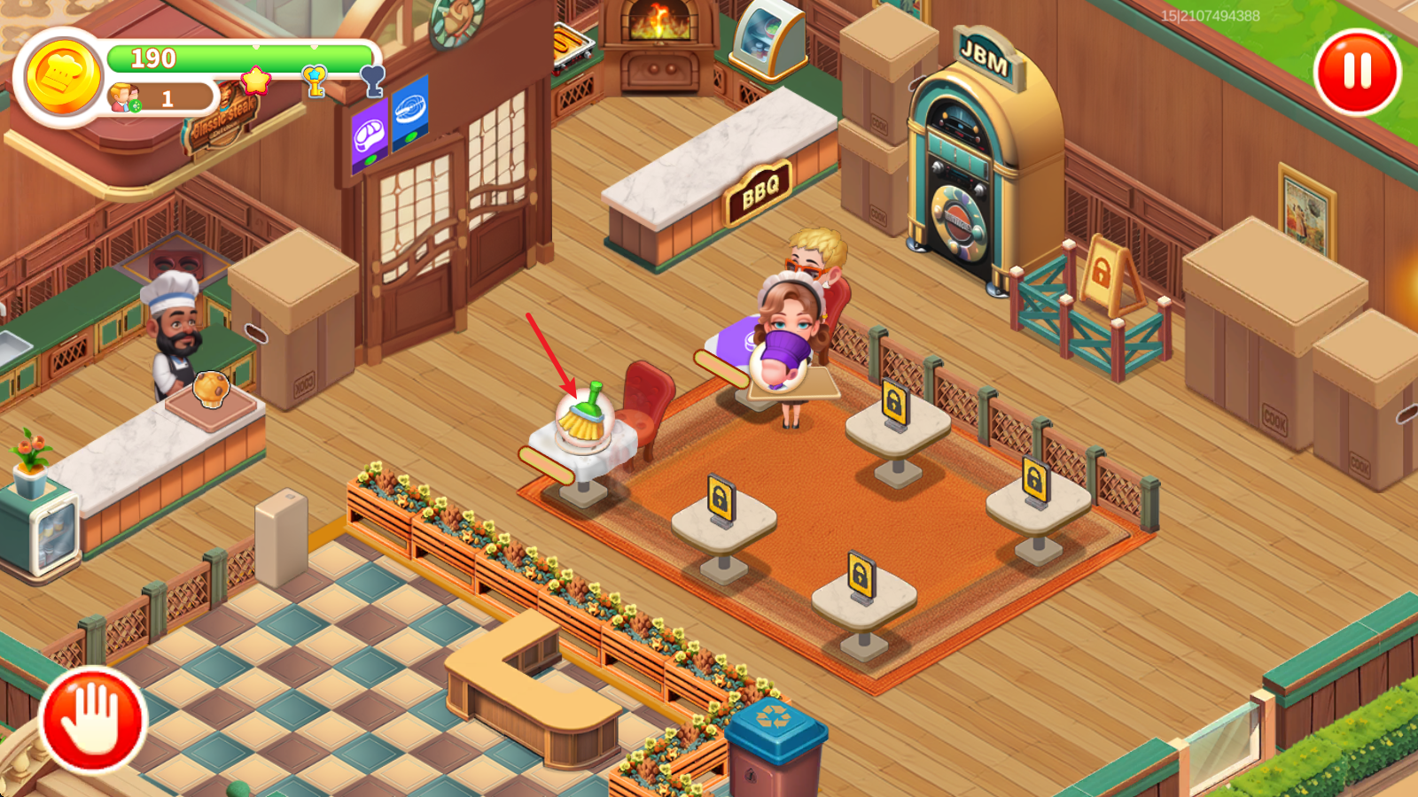 2、接着点击旁边的厨师帽,这样就会有对应的厨师为其上菜了。