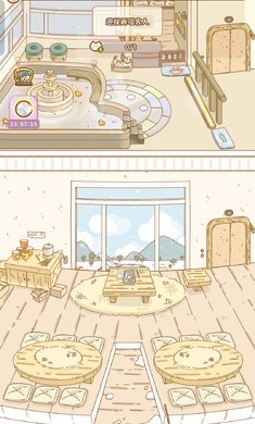 视觉呈现可爱又细腻,无论是旅店场景的装饰细节,还是猫咪之间的动态互动(如分享食物、依偎取暖),都生动逼真,大大增加了游戏的趣味性与治愈感。