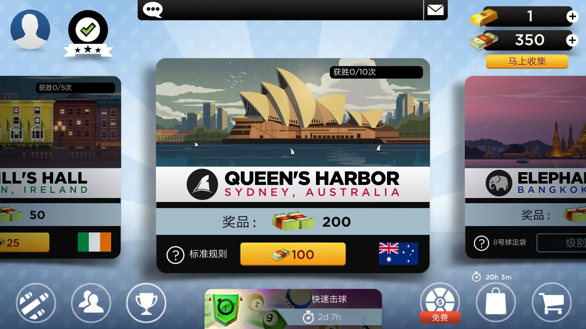 10、随着游戏进度的发展,我们可以挑战解锁不同的城市和级别,以上就是kings of pool的玩法了。