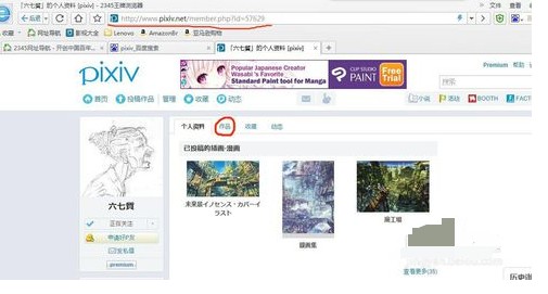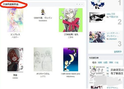1、进入自己的主页后,往下拉看到这个有一块很大的地方是《大家的新作品》,随便点一个人的进去。
