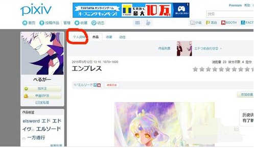 2、此时你看到的是他的作品页,点击旁边的《个人资料》。