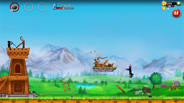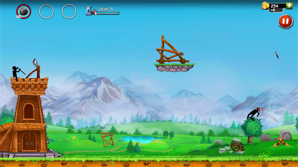 直观操作方式:触摸屏幕拉动弹射器,根据战斗需求调整拉伸力度,松开手指即可发射石块打击敌人,操作逻辑简单,却能精准把控攻击效果。