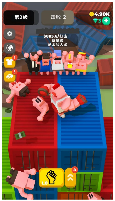 2、打败关主以进入新的量级。别放弃,进化成为一位专业拳击手吧。学习新的技能并妥善运用。使用铁拳重击对手和隐身技能以及许多其他功能都在这个有趣的放置型拳击大亨游戏中;