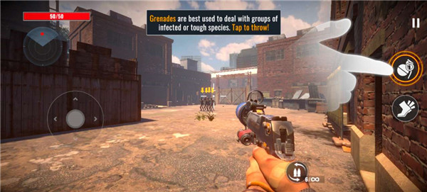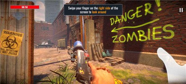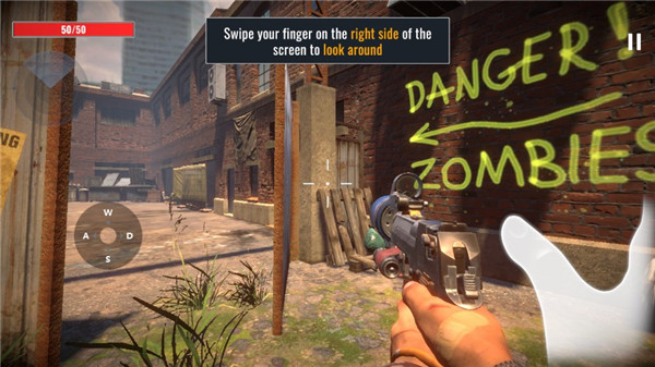 探索废墟:游戏中设有大量废弃废墟场景,玩家可深入其中搜寻弹药、医疗包、装备配件等资源。不过探索过程中需时刻警惕僵尸的突然袭击,一旦遭遇敌人,点击屏幕即可操控角色射击,快速消灭威胁,确保资源收集顺利。