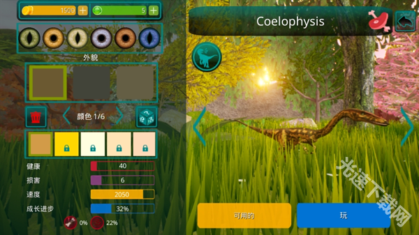 3、自定义的装扮系统,捏造专属的恐龙形象,在左边可以编辑各种外貌和颜色。