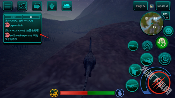 食物获取方式:不同食性的恐龙,获取食物的方式截然不同。如果你的恐龙是掠食者,就需要通过猎杀其他玩家操控的恐龙来获取肉类食物;若是食草恐龙,寻找食物会相对轻松,只需找到岛上特殊的蕨类植物,就能获取足够的能量。至于饮水,岛上任意的湖泊或水库都能满足需求,随时可以前去补充水分。