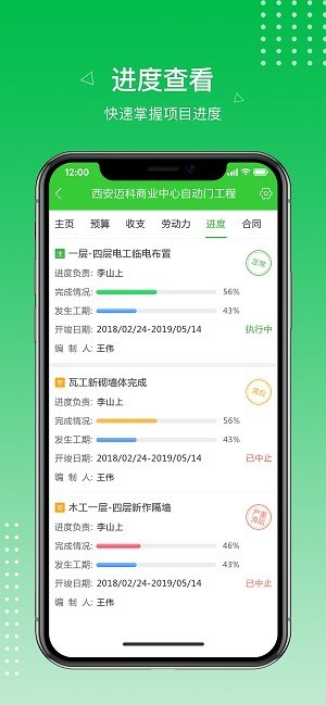 - 全景审批:项目管理内置7个审批环节,16种详情展示;另有12种异常判断保驾护航;