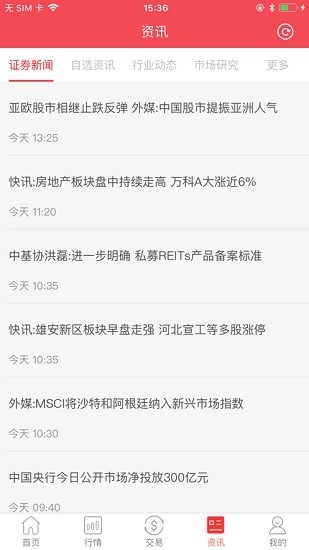 4、自选股票:查看并添加自己关注的证券、指数的价位、涨跌幅、市盈率等相关行情信息。