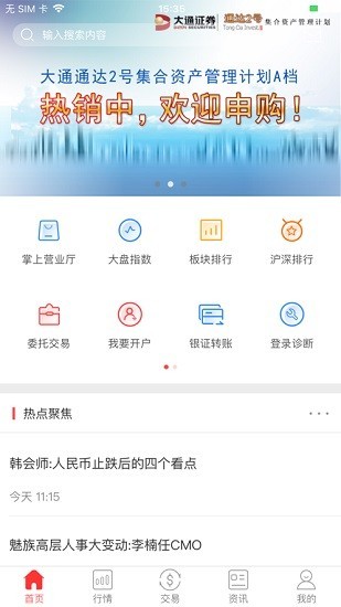 大通证券app是一款实用的证券炒股软件,这款软件有着非常清晰的行业走势,可以帮助用户快速的选择好自己想购买的股票,并且会在购买前精确的分析该股票的情况,对于一些散户式炒股的用户来说是非常好用的,并且现在通过全新升级后会像用户提供行业的专业资讯,24小时不断为你推送最新信息,同时你所关注的一些资讯信息也会为你实时推送。有的时候你可以与炒股大神只差一个软件,这里有着非常详细的炒股资讯,更多的相关信息都在这里当你使用。大通证券手机版保留了传统的界面和操作习惯,使你不用学习、就能轻松上手,而且不需要特别的维护。有需要的用户可以来本站下载体验一下软件给你带来的便捷。