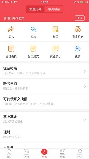 2、交易:用户登录后可进行证券买卖、银证转账,并查看自己账户资金、持仓、交易明细等信息。