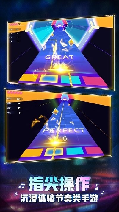 5、不同的音乐需要玩家有不同的操作,有的音乐需要玩家轻轻点击,有需要玩家一直按压。
